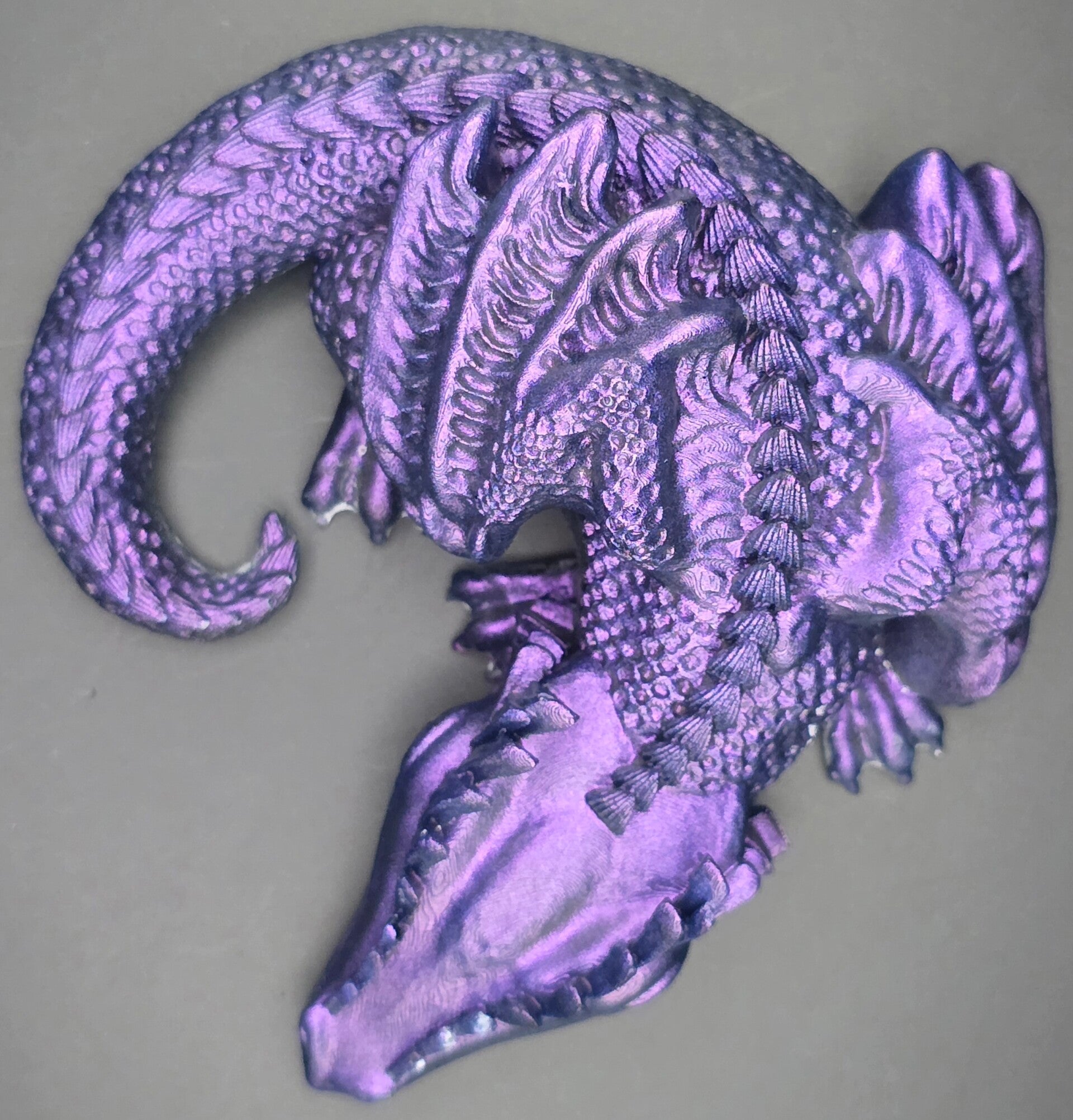 Dragon curled up in purple.
