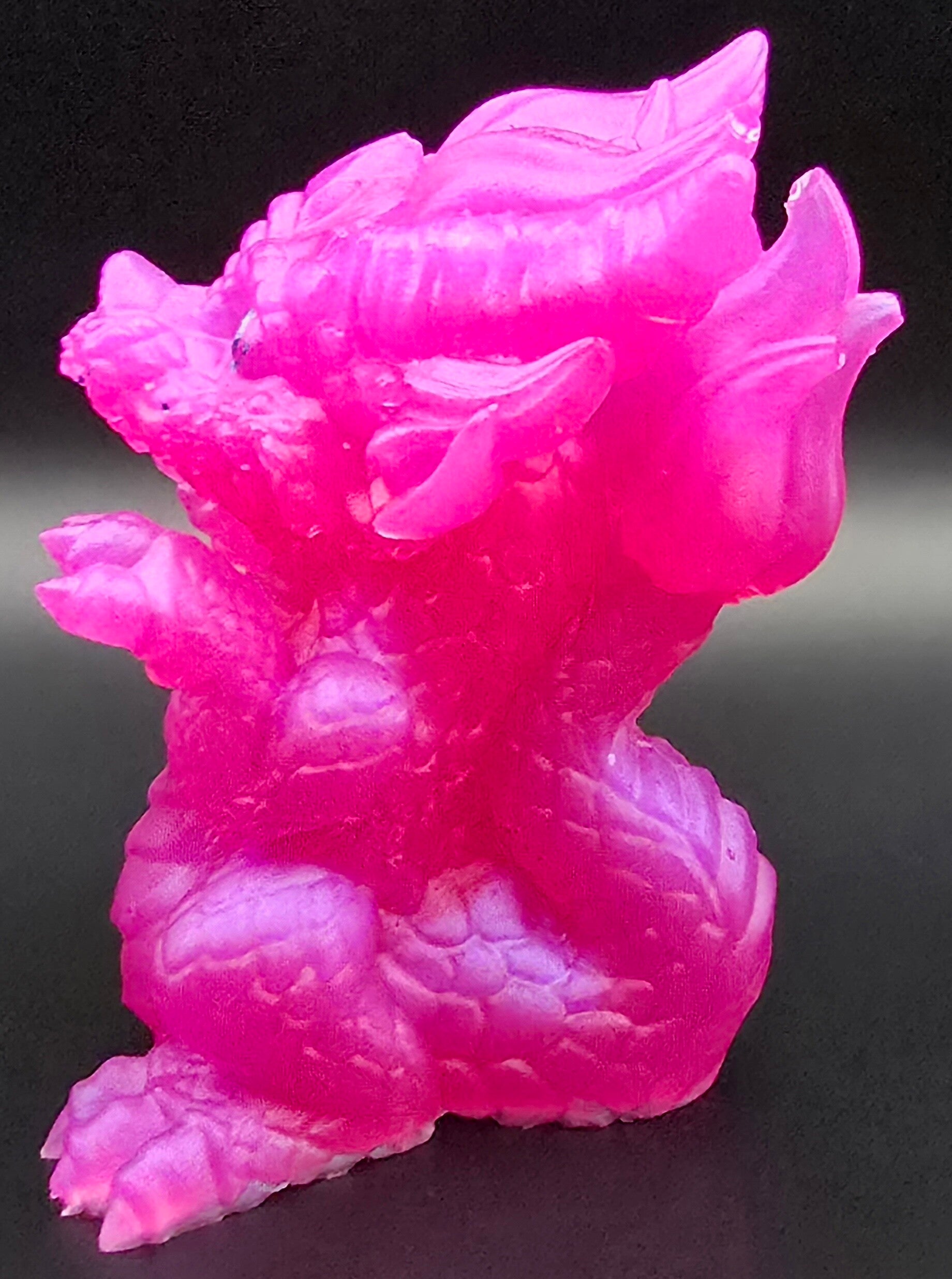 This vibrant, shocking pink chinese dragon is available for adoption. Please help us find a loving home for her.
